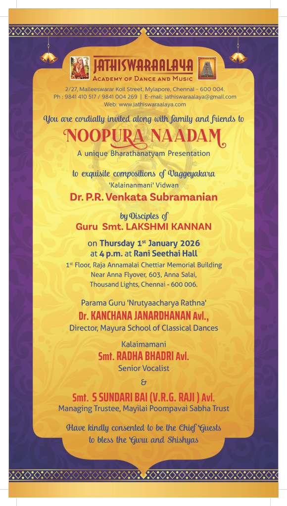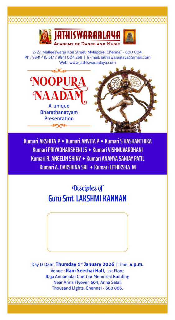 (2024) Kumari P. Shruthi’s performance for Marghazhi Natya Vizha under the auspices of Pushpanjali Cultural Trust