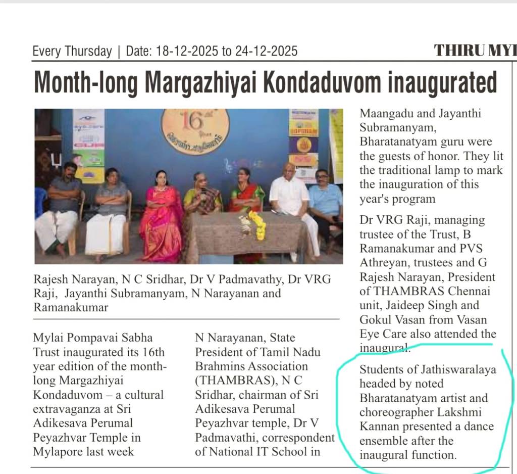 Pictures and mentions of Kumari S Sambhavi on her Bharatanatya Arangetram on 25 May 2025